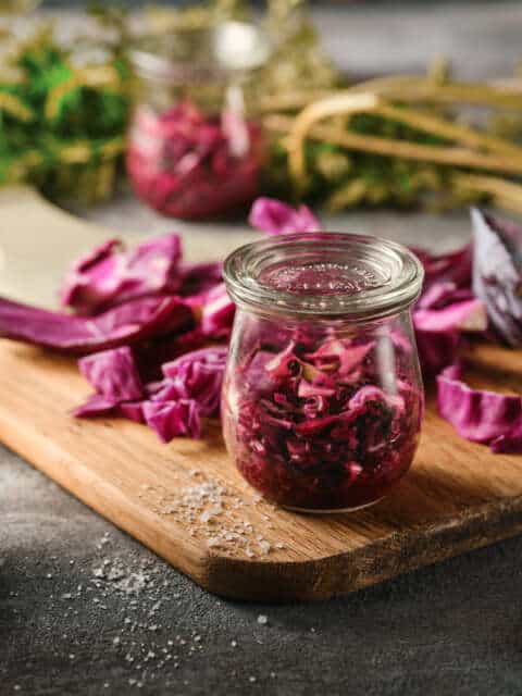 - Sourdough sendvič s kranjsko klobaso ali mariniranim tempehom: Popečen drožnat kruh, na njem polovica popečene kranjske klobase, kislo zelje, čebulni confit in preliv iz fermentirane gorčice z medom. Zaključeno s svežim peteršiljem ali drobnjakom.